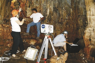 三维激光扫描仪器可应用在各种复杂的环境中,特别是矿山巷道。因为当爆破后,巷道中环境恶劣,粉尘多、湿度大、碎石不时落下,工作人员无法立即进入,不易近距离接触时扫描采集测量数据。同时没有相对平整的支撑,仪器设备非常容易跌落。这些情况是矿山巷道非常常见的现象。